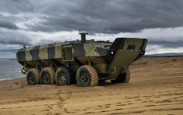 SUPERAV 8×8 是一款轮式两栖装甲车辆,旨在能够在海洋和陆地环境之间无缝运行。其八轮驱动配置使车辆在登陆后具备出色的越野机动性,而其车体设计则使其能够在海上从两栖舰艇出发并返回,这一能力使海军陆战队能够从舰艇直接抵达海岸,而无需依赖专门的登陆艇。该车辆的两栖性能、装甲防护以及在不同任务变体中灵活的载重能力,使其非常适合现代海军陆战队步兵部队预期执行的各种近海和沿海作战任务。